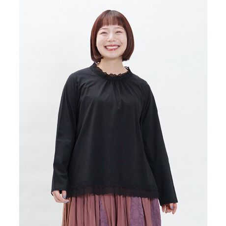 インナーにも便利な衿元と裾に伸縮性のあるレースを施したプルオーバー。
