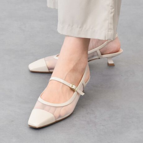 細身のスクエアトウがスッキリとした印象のワンストラップバックバンドパンプスが「ファビオルスコーニ」から登場しました。