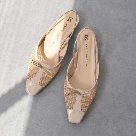 細身のスクエアトウがスッキリとした印象のローヒールバックバンドパンプスが「ファビオルスコーニ」から登場しました。