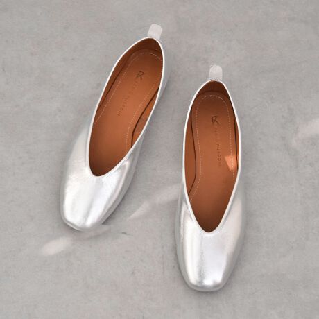 すっきりとした印象のソフトスクエアトウVカットバレエシューズは、飽きのこないベーシックなデザインで、オンオフ問わず使える便利なアイテムです。