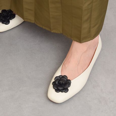 カメリアモチーフのデザインが印象的なラウンドトウのVカットバレエシューズが「ファビオルスコーニ」から登場しました。