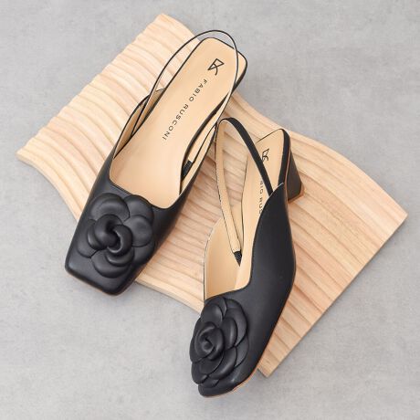 カメリアモチーフのデザインが印象的なスクエアトウバックバンドパンプスが「ファビオルスコーニ」から登場しました。