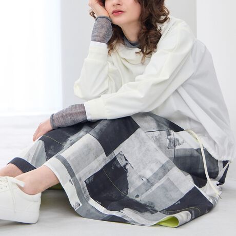 大胆なアートプリントが目を惹くスカート