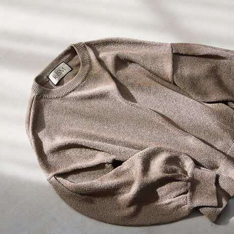 たぽっとしたボリューム感のあるスリーブが一枚で着映えするデザインです。