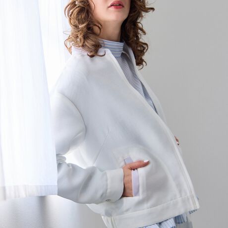 カジュアルになりがちなブルゾンをふくらみ感のあるシアー素材で女性らしくデザイン。