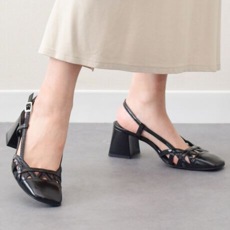 INTER-CHAUSSURES◆5.8cmヒール◆スクエアトウチャンキーヒールバックバンド
