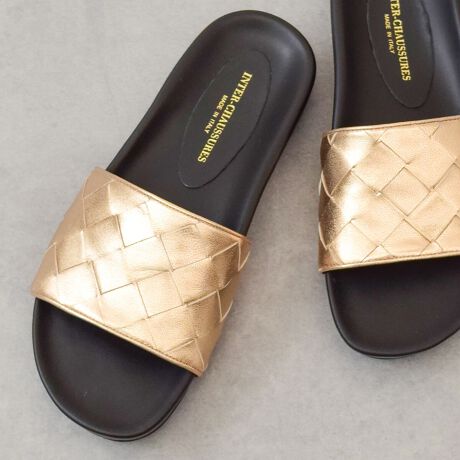 イントレチャートのフットベッドスライドサンダルはカジュアルなデザインでありながら、大人っぽい雰囲気です。