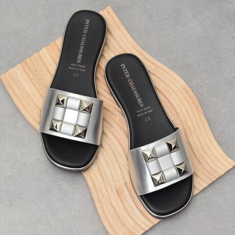 INTER-CHAUSSURES◆1.1cmヒール◆オーナメントフラットスライドサンダル