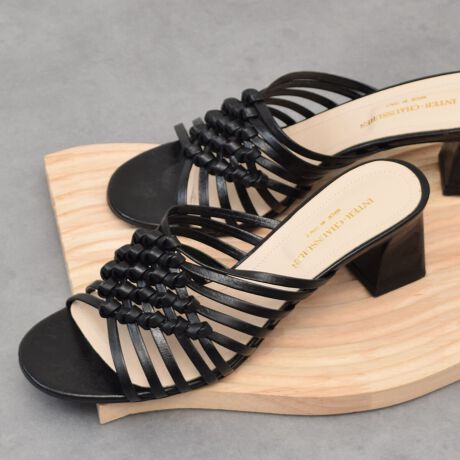 INTER-CHAUSSURES◆5.5cmヒール◆ラウンドトウフレアヒールノットサンダル
