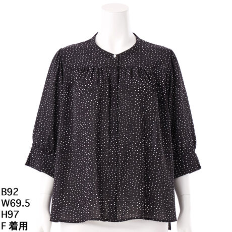 上品なランダムドット柄プリントが特徴的なこのブラウスは、ギャザー入りでゆったりとしたシルエットが魅力的です。洗練されたデザインが、大人の女性にぴったりな一着です!軽く、サラリとした肌触りの素材が、快適で心地よい着用感を提供します。