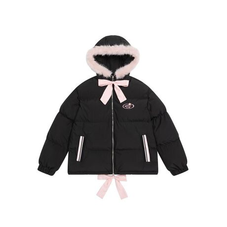 ふわふわの中綿が暖かく、寒い冬も快適に過ごせるフードジャケット。キュートなリボンがアクセントになったデザインで、女性らしさをプラス。カジュアルなスタイルからきれいめまで、幅広いコーディネートに合わせやすいアイテムです。