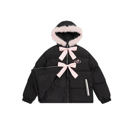 ふわふわの中綿が暖かく、寒い冬も快適に過ごせるフードジャケット。キュートなリボンがアクセントになったデザインで、女性らしさをプラス。カジュアルなスタイルからきれいめまで、幅広いコーディネートに合わせやすいアイテムです。
