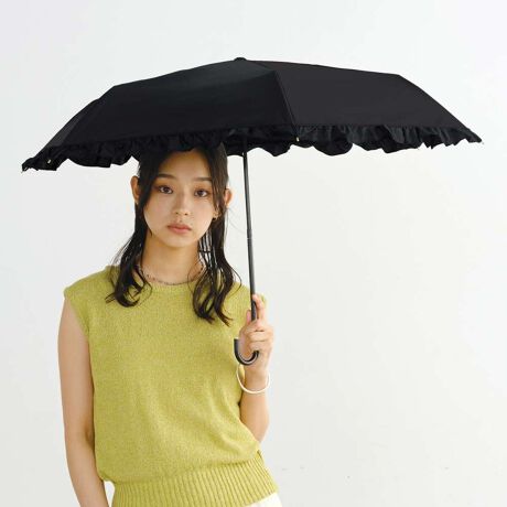 大人かわいいフリルが大人気!完全遮光100%生地を使用したフェミニンな折りたたみ日傘