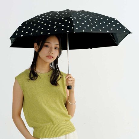ギザギザの小さなハート柄が散りばめられた可愛い折りたたみ日傘