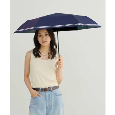 セーラー風の二重ラインがデザインされたシンプルかつ上品な折りたたみ日傘。