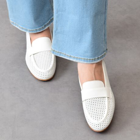 春夏らしい抜け感のあるパンチングレザーを使用したラウンドトウローファーです。