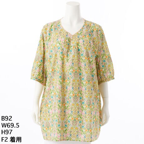 このフラワーガーデン5分袖チュニックは、カジュアルながらも華やかなデザインが特徴で、デイリーコーデに彩りを加えてくれます。