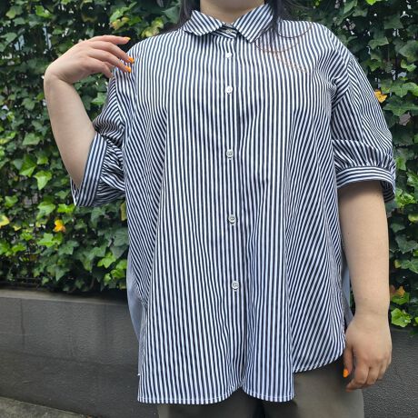 裾が切り替えになったシアー感漂うこのシャツブラウスは、春夏シーズンにぴったりのアイテムです。透け感があり、軽やかさを演出するデザインは、女性らしさを引き立てます!ストライプ柄はすっきりとした印象を与え、カジュアルにもきれいめにもコーディネートが可能です。