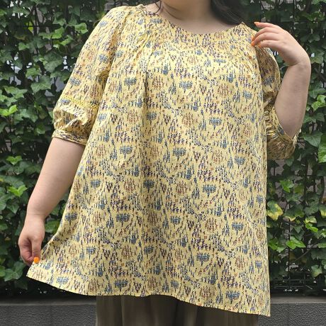 このチュニックは、胸元がスクエアに開いたデザインが特徴で、やや広めのデコルテラインが美しい印象を与えます。暑い夏の日にも快適に過ごせるかぶりタイプで、軽やかな着心地を実現。特に注目してほしいのは、その魅力的なパレード柄!じっと見たくなるようなデザインは、周りの視線を集めること間違いなしです。
