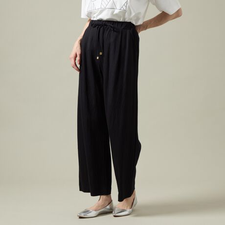 【洗える】【ウエスト紐】 さらっと楽な着心地セミワイドパンツ