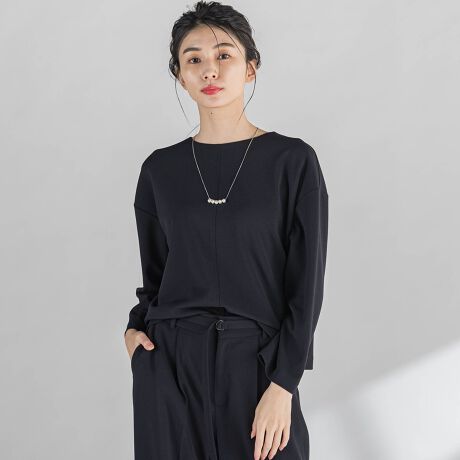 表情感のあるジョーゼットジャージーを使用した上品なシンプルカットソー。