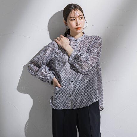 関連ワード:la.f… ラ エフ 2025春夏 2025SS 春 春服 ブラウス ポリエステル 長袖 格子柄 ジャカード バンドカラー インナー シンプル フォーマル モード マニッシュ
