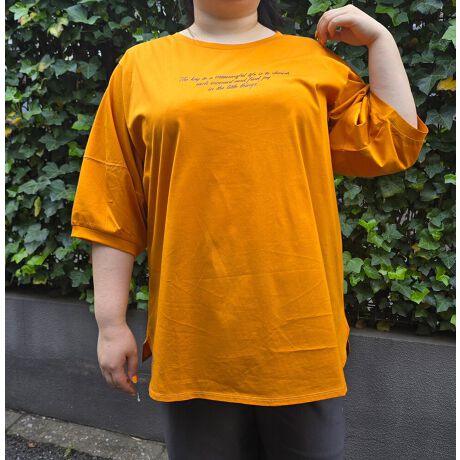 ふんわりとしたランタン型のスリーブが、シンプルな中にも華やかさを添える大人可愛いTシャツです。