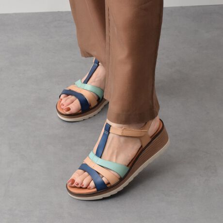 Marila◆5.4cmヒール◆カラーコンビウエッジヒールサンダル