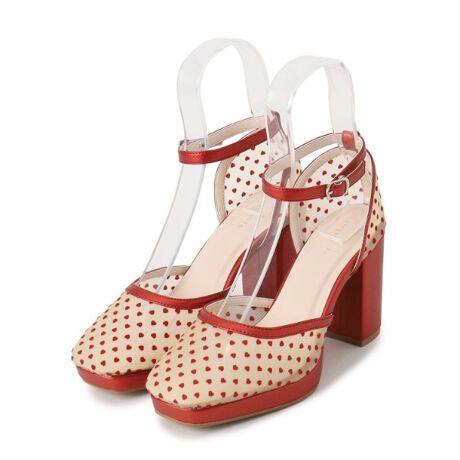 チュールメッシュに赤いハートが散りばめられてるデザインは大人ガーリーが好きな方におすすめ。