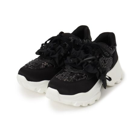 アッパーにはトレンドのスパンコール+グリッターを使用しているので、フリルのストラップを外しても甘めデザイン♪