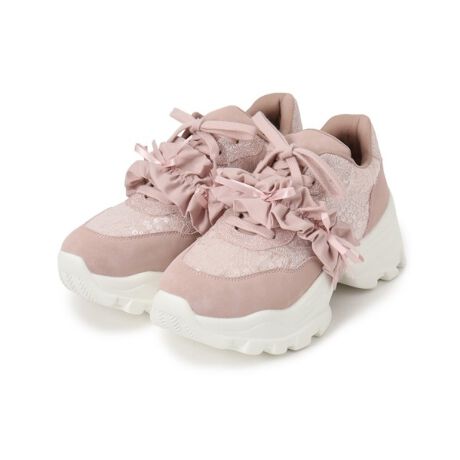 アッパーにはトレンドのスパンコール+グリッターを使用しているので、フリルのストラップを外しても甘めデザイン♪