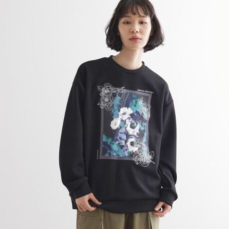 グラフィックフォトと刺繍で花柄を表現した一枚。