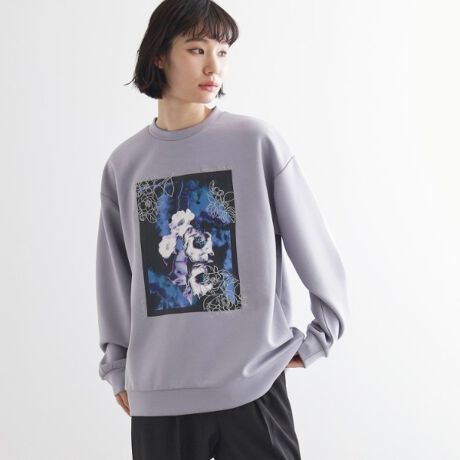 グラフィックフォトと刺繍で花柄を表現した一枚。