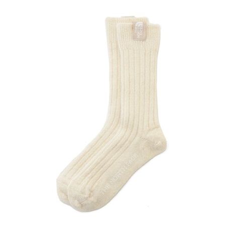 履き口に飾ったタグがスタイリッシュにブランドアピールしているソックス。リブ編みにスマートな印象を受ける一足です。暖かみのあるふわふわとした素材もシーズンムードを演出するポイント。
