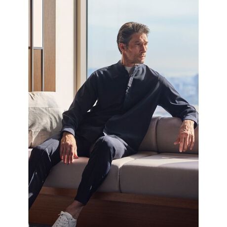 こだわりの素材、縫製仕様をふんだんに盛り込んだバンドカラーシャツ。