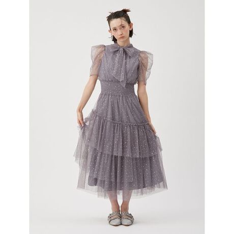 人気のハーフスリーブラメチュールドレスに新色のIVRを追加しました。全体に散りばめられたラメが輝きを放ち、ロマンティックムードを盛り上げます。ウエストシャーリングでメリハリのあるシルエットに、前後どちらでも結べるボウタイが華やぎを添えるポイントとなっています。