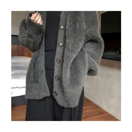 毛足の長いシャギー素材がふんわりと包み込み、一枚で着映えする主役級Vネックカーディガンが登場♪<br>