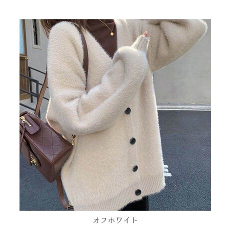 毛足の長いシャギー素材がふんわりと包み込み、一枚で着映えする主役級Vネックカーディガンが登場♪<br>