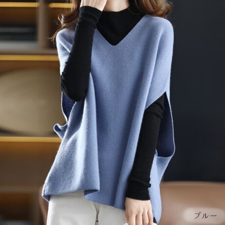 レイヤードするだけで、おしゃれでこなれ感のある印象に見せてくれるVネックドルマンニットベストが登場♪<br>