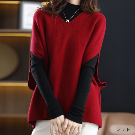 レイヤードするだけで、おしゃれでこなれ感のある印象に見せてくれるVネックドルマンニットベストが登場♪<br>