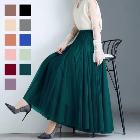 程よいボリュームで広がりすぎない上品なチュールロングスカートが登場♪<br>