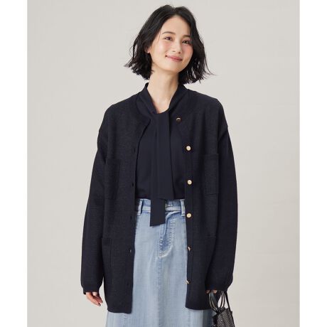 様々な糸を組み合わせてツイードを表現したニットアウター■デザインツイードジャケットのようなきちんと感と、ニットならではの快適な着心地を兼ね備えたニットアウターです。シンプルなデザインでありながら、前身頃のポケットがアクセントになっています。ヒップが隠れる長さで、ボトムを選ばず着て頂けます。ユニークな組織ながら色味はすっきりとまとめることで上品に仕上げました。■素材様々な糸を組み合わせることで繊細なツイードを表現しているニット素材です。柔らかなコットン、膨らみのあるストレッチ糸、光沢感のあるナイロン糸など特徴の異なる素材を表面に凸凹ができるように編むことで、より立体的にツイーディーに表現しています。■同素材アイテムプルオーバーニット(KRWRGM0252)