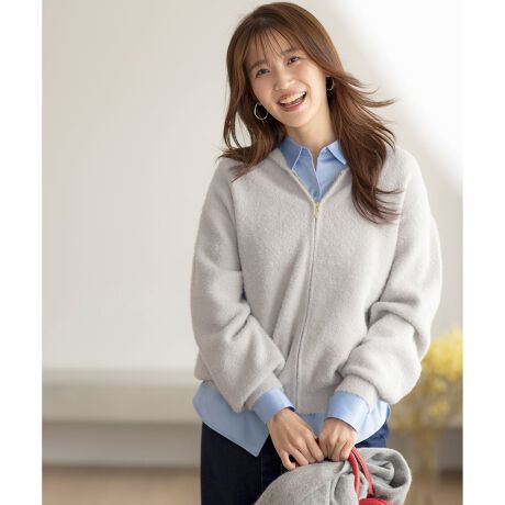 繊細なラメとシャギー素材を使用した安心感のある着心地のフェミニンなニットパーカーです。程よいゆとりがありつつもスッキリ見えするサイズ感で楽な着心地。さり気ないパフ袖と柔らかな印象の素材感で上品な雰囲気を演出してくれる1着になっています。