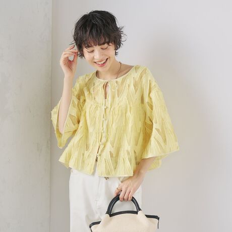 《セットアップ対応》キラキラカットジャガード2WAYブラウス