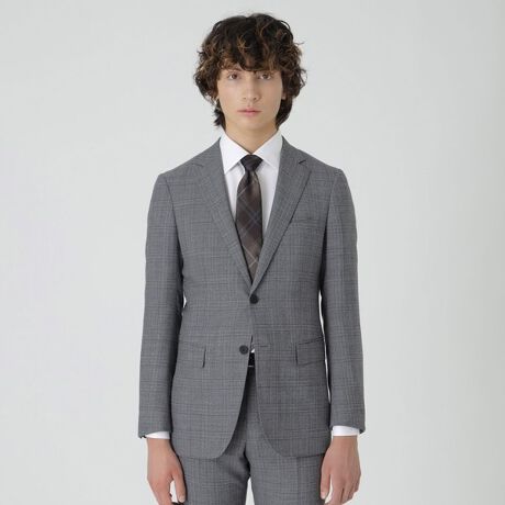 【ミルド調のライトグレーチェックスーツ】