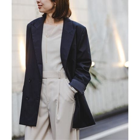 キレイめな印象のあるジャケットのバリエーションを豊富にする綿のナチュラルなタイプがあれば、オシャレの幅も格段に広がります。肩がやや落ちるくらいのショルダーライン、薄めの肩パッド入りでスタイリッシュ&モダンに着用できるのがポイント。比較的薄手なのでシャツライクで、オーバーサイズだが張って見えず気軽に羽織れるのが嬉しいデイリーアイテムです。