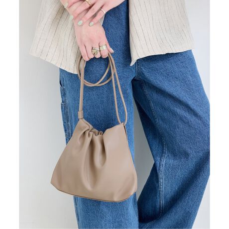 トレンドの小さめバッグですが、底に少しマチをつけているので見た目よりも収納力があり、ショルダーでも手持ちでも使用できる形です。