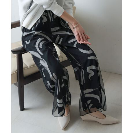 大胆なアートラインプリントが目を引くインパクトのあるパンツです。大胆な柄ですがモノトーンにすることでシンプルなトップスに合わせてもコーデを華やかにしてくれます。ウエストゴムなので履き心地も楽ちん!ストレスフリーでオシャレを楽しんでいただけます。