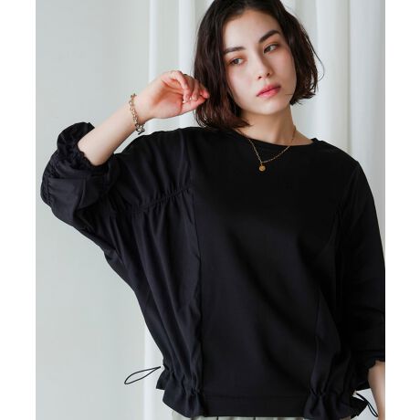 さりげない個性を楽しみたいあなたにおすすめのプルオーバー。見た目はシンプルながら、細部にこだわったデザインがコーディネートをワンランクアップさせます。さらっとした着心地の良い生地にシャーリング加工された生地がドッキング。全体に個性的な立体感を演出してくれます。