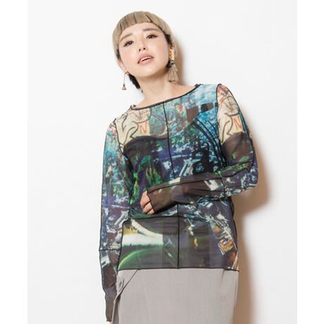 引き続きトレンドのシアートップスは、インナーとしてもレイヤードスタイルのアクセントとしても活躍。